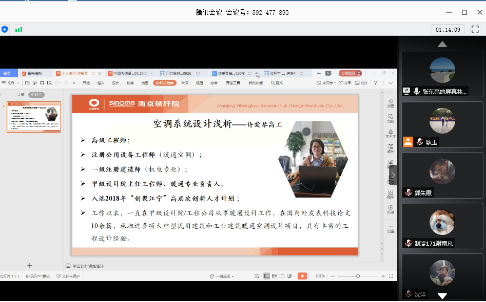 特邀南京玻纤院主任工程师暖通专业负责人许爱琴高工开展了以“空调系统设计浅析”为主题的线上直播学术讲座,学院200多名师生聆听了讲座。