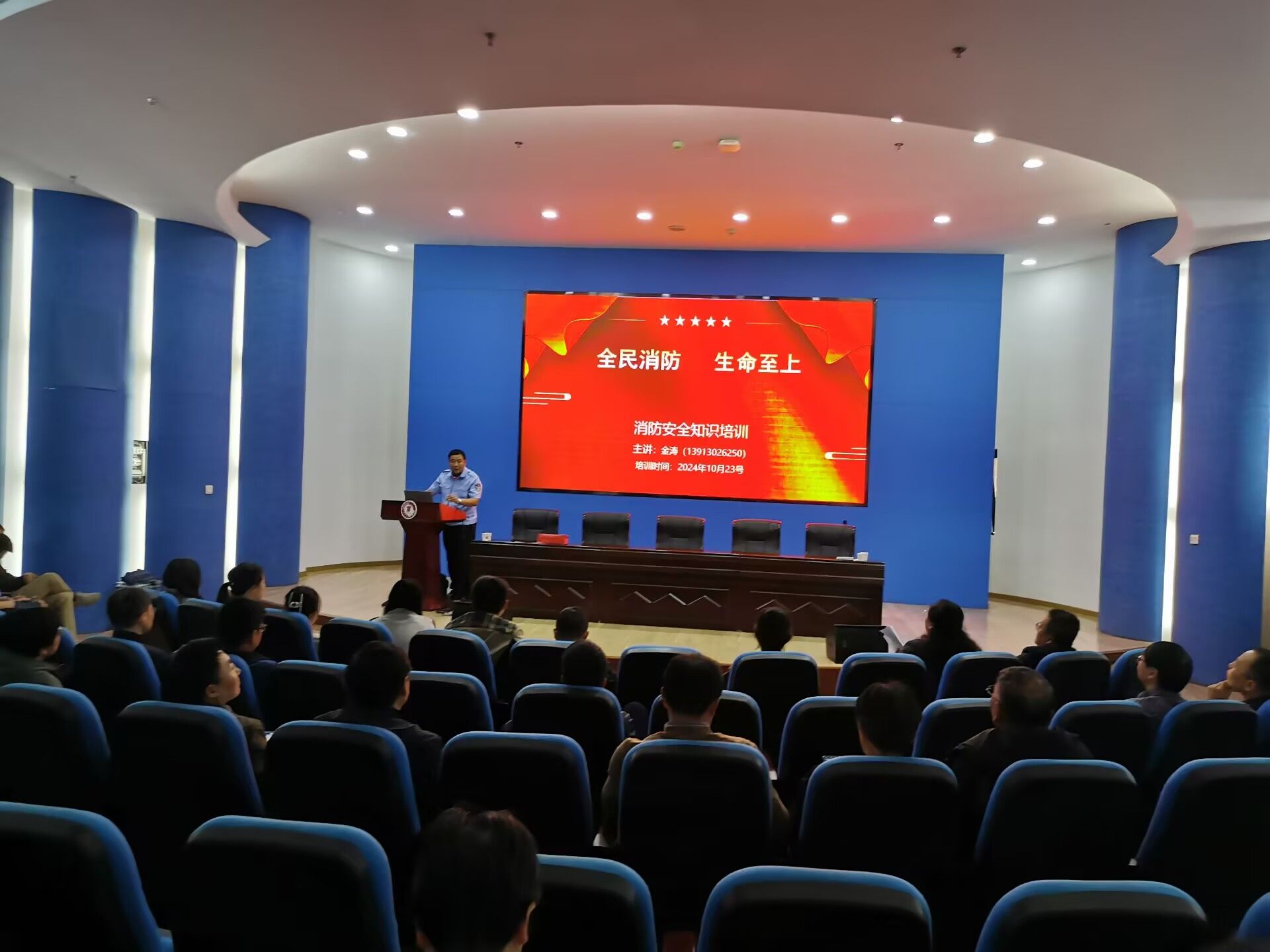 邀请资深消防教员金涛在图书馆二楼报告厅为学院教师进行了一场关于实验室安全问题及处置措施的讲座。学院领导班子成员、全体教师共80余人参加了本次安全培训。