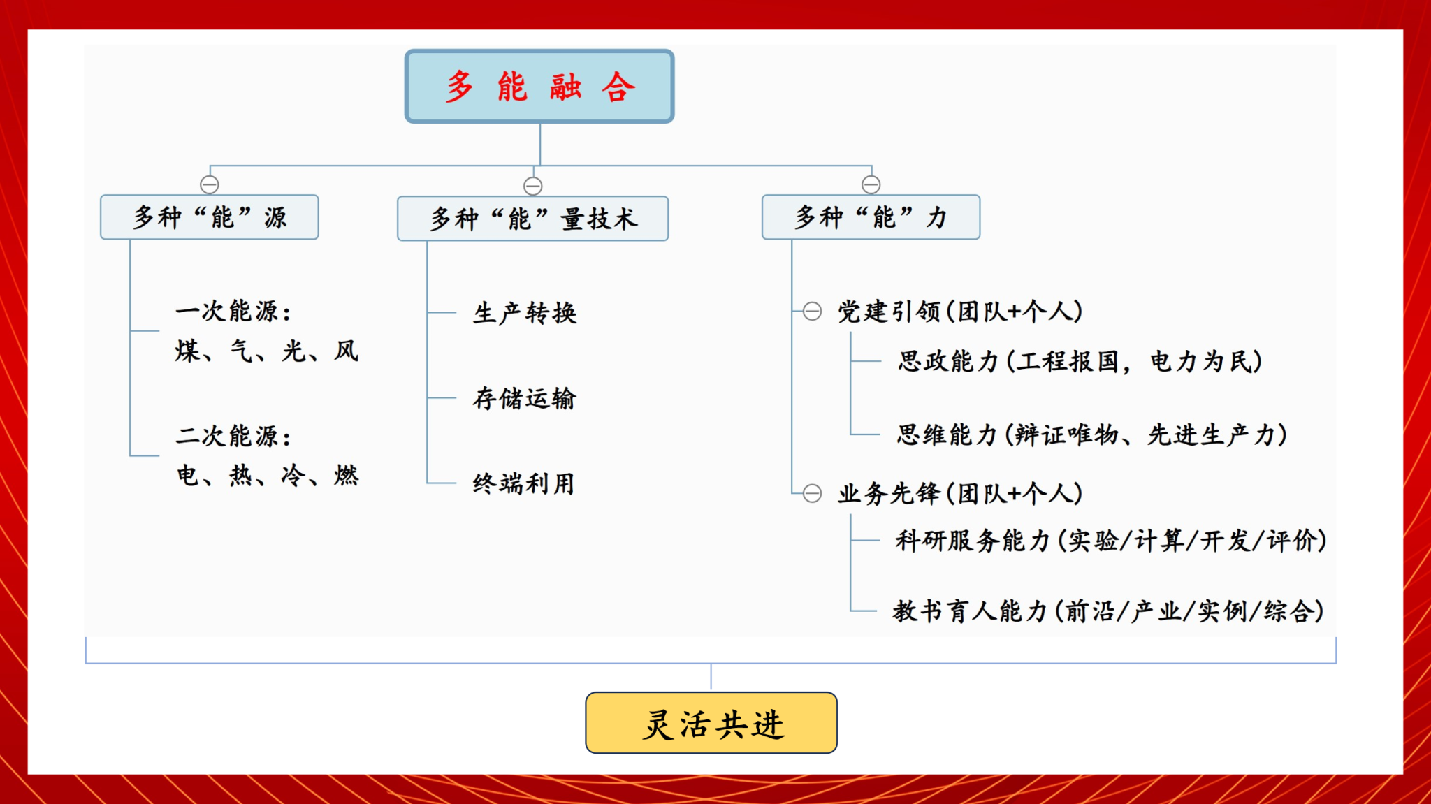 徐艳书记围绕党支部标准化优质化建设做了说明,希望党支部充分把握基本功能和特色定位,以更高标准、更严要求,在组织抢占电力科技制高点、开展建制化科研、承担重点科研任务中,发挥骨干引领、示范带动作用,推动党建工作与科研业务、教学业务、育人业务的深度融合,积极打造党支部的特色亮点。支部书记宋国辉对支部 “多能融合、灵活共进”的党建品牌“作了具体的阐释。