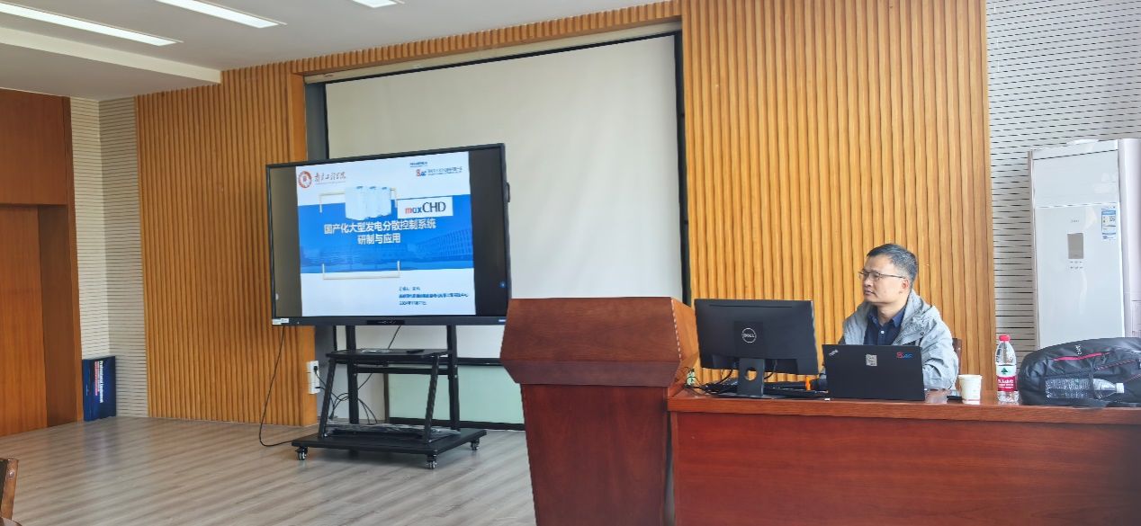 吴科首先回顾了国产DCS系统(分散控制系统)的研发历程,介绍了团队如何在技术上实现多项突破,从而推动该系统逐步迈向国际领先水平,成功实现了“从无到有”的跨越。通过对比国内外同类技术的特点、分析知识成果的创新性以及系统在检测检验和试运行中的表现,他全面剖析了国产DCS的独特优势。他强调,该系统不仅在性能参数上达到国际先进水平,还有效降低了运行成本,同时凭借模块化设计显著提升了系统维护与功能扩展的灵活性,充分彰显了其在推动能源行业数字化转型中的核心价值。通过实际案例展示,吴科向在场师生生动阐释了国产DCS系统在实际场景中的成功应用。