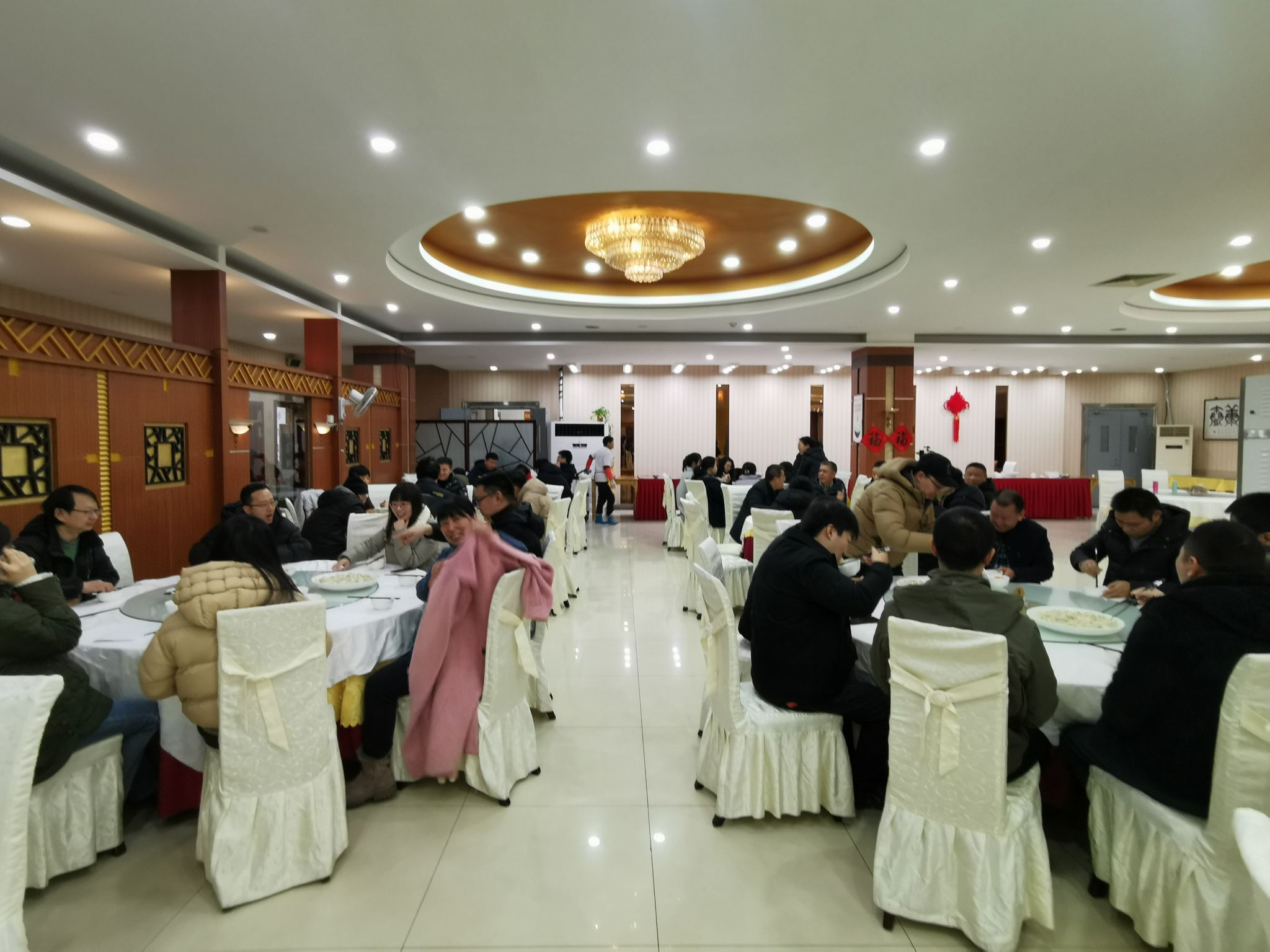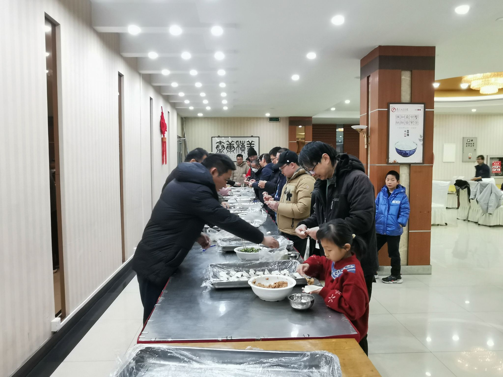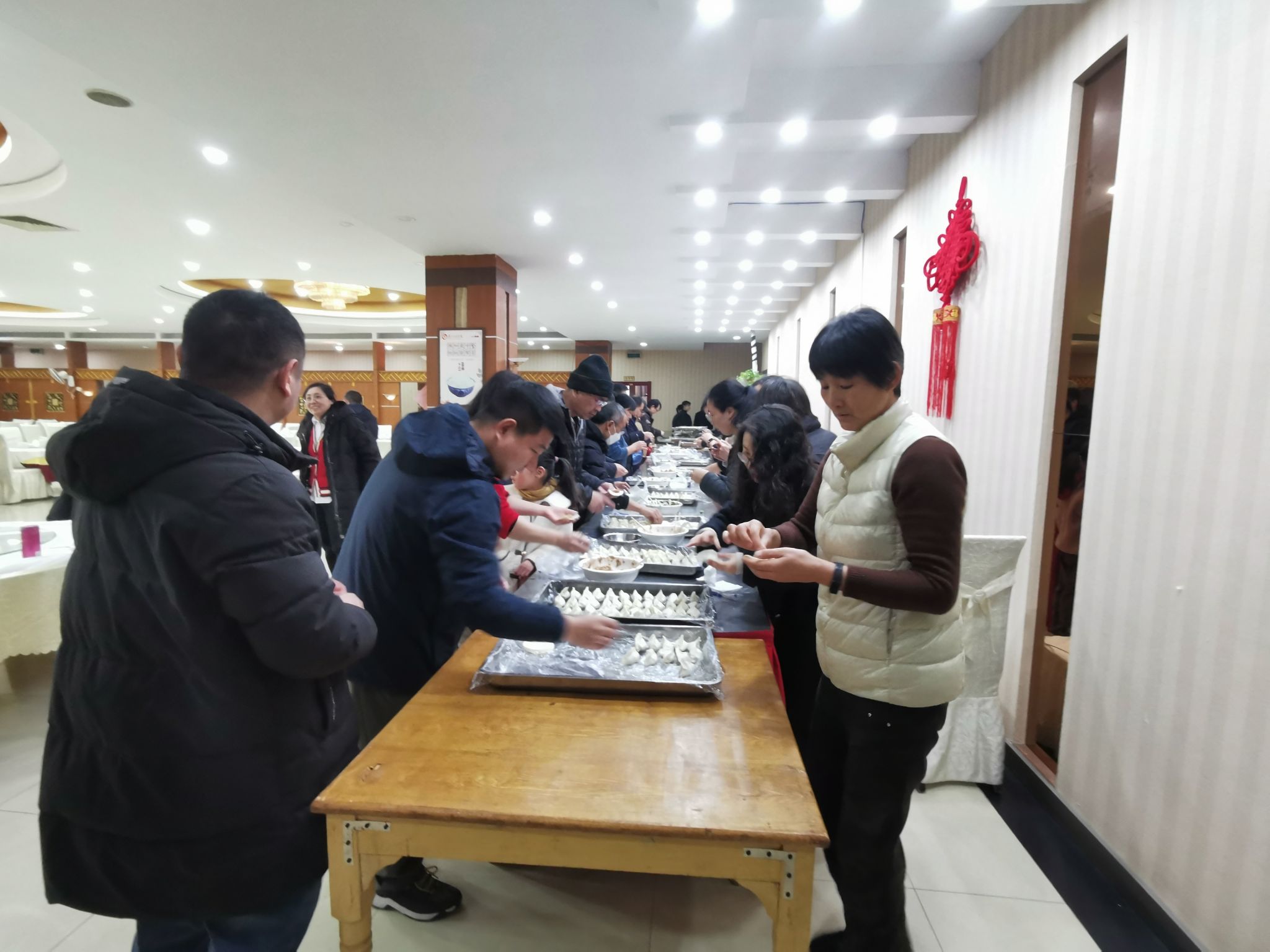 餐厅精心筹备了新鲜食材,包括多种馅料、饺子皮以及制作饺子的工具。教职工热火朝天地包起了饺子,欢声笑语不断,现场充满了浓浓的节日气氛。