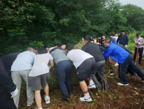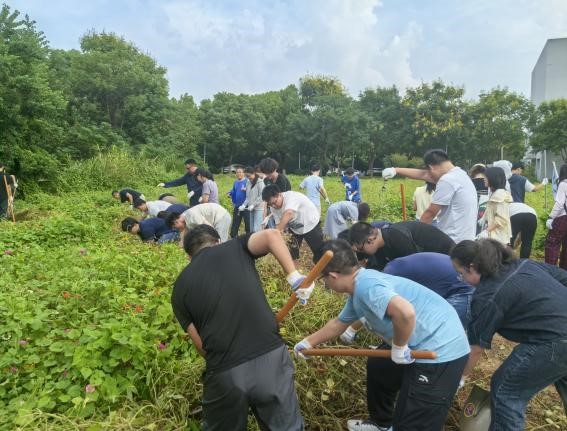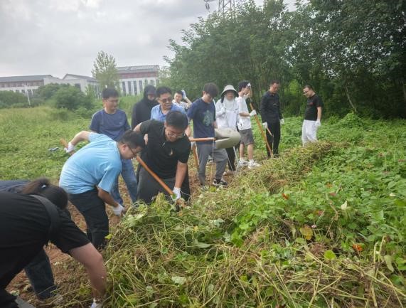 党委全体领导班子带领学院党员教师、科级干部及学生党员代表,共同前往“知行园”劳动实践基地,开展首次除草、土地平整等建设工作。
