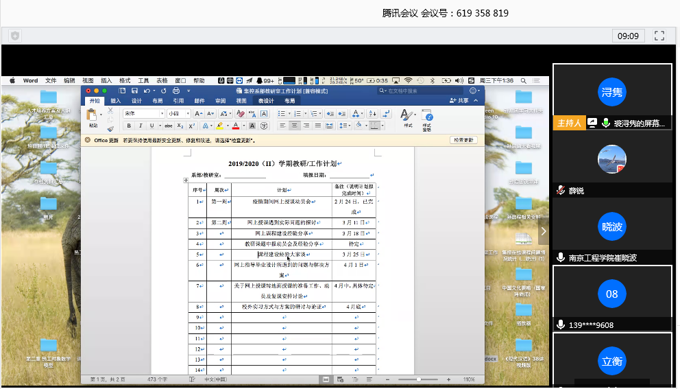 为了更好地开展“线上”教学活动,提高“在线”教学质量,能源信息与自动化系的17位老师于2020年3月11号下午13:30~14:30利用“腾讯会议”平台在线开展了主题为“在线教学遇到实际问题的探讨”的教研活动,本次会议有该系主任裘浔隽老师主持。