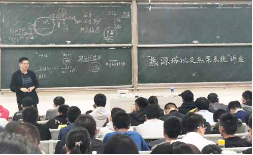 建筑环境与能源应用系副主任文先太博士在东201为同学们开展“热源塔及其热泵系统”专题讲座。此次讲座是该院科技文化节系列活动之一,旨在开拓学生的学术视野、提升学生专业课程的学习兴趣。