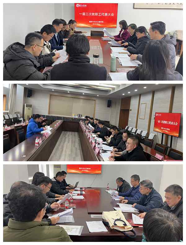 在至行苑·工程实践中心9-312会议室召开一届三次教职工代表大会,凝心聚力,共商学院高质量发展大计。校工会刘彦老师莅临观摩,学院党政领导、教职工代表共计40余人与会。