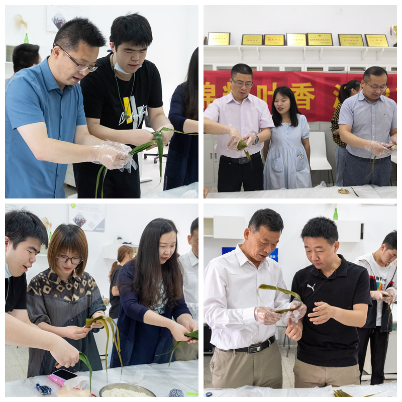 在活动现场,翠绿的粽叶、新鲜的糯米、鲜红的蜜枣早已一字排开。“以前只吃过粽子,从来没有试过自己包,从摘粽叶到最后成型,原来包粽子也是门技术活啊。”老师和同学们在“包粽子小能手”、能动172班刘玉岩的带领下,很快掌握了包粽子的诀窍。将两条粽叶平摊在左手掌中,折成锥形,在“锥形”中加几勺糯米,再放入蜜枣,裹紧、绕绳,打结……一个多小时过去,桌子上已经整整齐齐摆好了现场师生包的上百枚粽子。能动171第二班主任王薇薇一边与同学们配合着,一边嘱托毕业生:学习没有完结的时候,同学们在追梦途中如遇到困惑,可以跟老师们多联系、常沟通,祝大家以用砥砺前行的青春底色描绘多彩灿烂的人生画卷,用优异的成绩向建党100周年献礼。