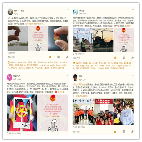 的同学们通过发起照片和文字传递的方式,表达了对共青团的深深祝福。