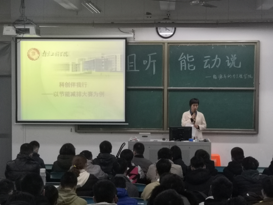 报告会分上下半场,上半场由环境工程学院副教授、环境工程系主任王慧雅老师担任主讲。王老师以“科创伴我行——以节能减排大赛为例”为主题,从“为什么要开展科创”、“什么叫创新”、“怎么创新”、“如何开展科创”等方面,对大学生科创的基本步骤、科创的实现途径等几个方面给出了指导意见,她还结合参加大赛的经历,帮助同学们分析开展科创活动的切入点,希望创新创业能成为同学们大学生活的重要组成部分。