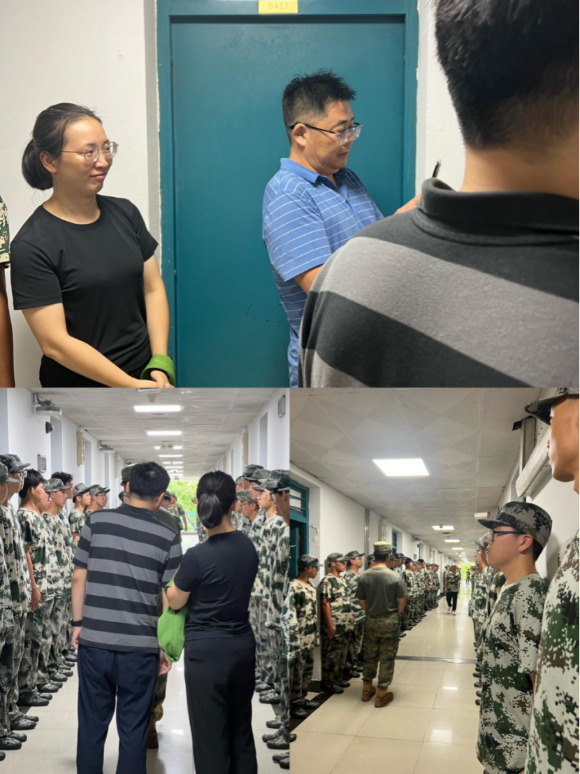 除日常的队列训练之外,教官还对同学们军训期间的内务整理作了要求,并亲自上阵为同学们展示,同学们学习体验了将如何被子叠成“豆腐块”,以及衣服的叠法、物品收纳等,增加了军训趣味性的同时也培养了同学们良好的个人习惯,有助于养成严谨细致的生活作风。学院党委副书记朱正林及学工办全体辅导员走进宿舍,看望正在训练的教官和同学,对整体军训情况作详细了解,并对承训教官表达感谢。