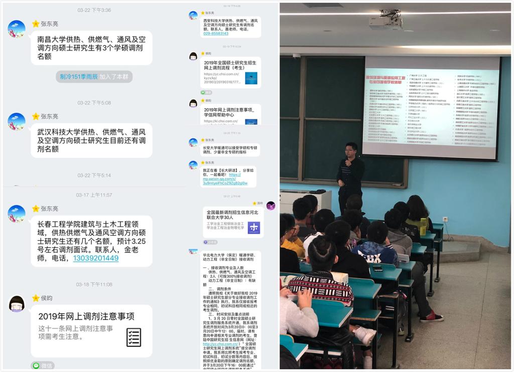 教研室牵头,线上线下齐用力。暖通152班现今取得的成绩得益于提前规划与教研室老师的个性化指导。教研室老师自大一专业导论开始就向同学们讲述专业发展方向,并组织进行考研专题指导,多次利用qq、微信等媒介指导学生如何选择目标院校及跟进备考进度。