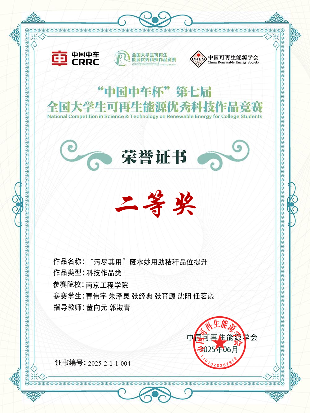 2支参赛团队经过激烈角逐脱颖而出,其中,作品《“污尽其用”——废水妙用助秸秆品位提升》(参赛学生:曹伟宇等,指导教师:董向元、郭淑青)荣获全国二等奖,作品《阳光智行——一种基于Arduino的太阳能零功耗智能交通指示牌》(参赛学生:盖青松,等,指导教师:吴俊杰)荣获全国三等奖。